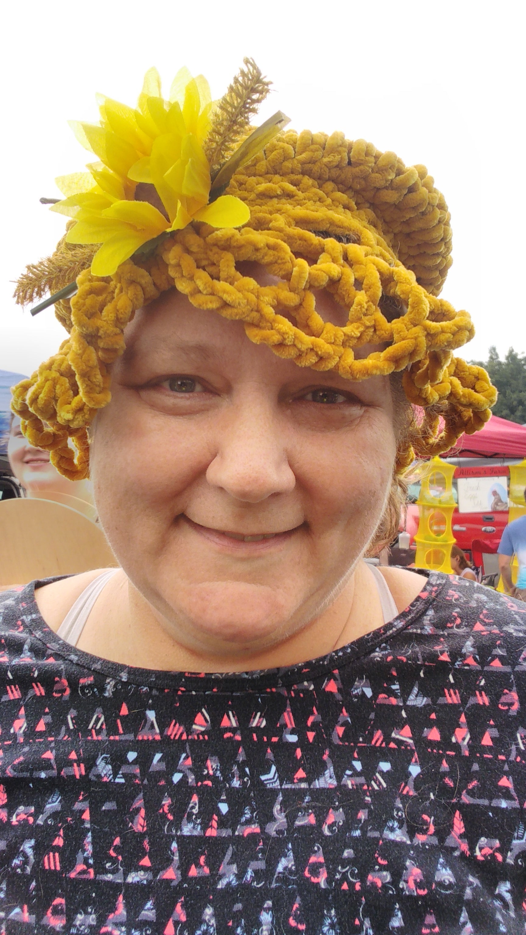 When you wear this hat think of sunflowers and sunshine, green pastures tall grass, blue skies and red barns, heavenly venue on earth to relax.
